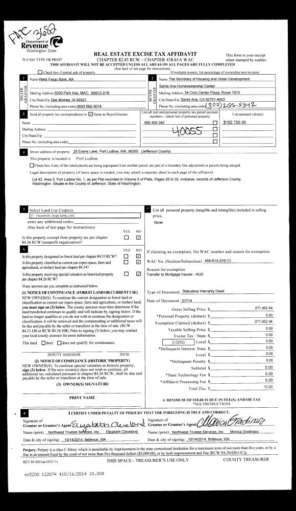 | Mailing Address: | 537 N BAY WAY PORT LUDLOW, WA 98365-9455 | % Ownership: | 100.0000000000% |