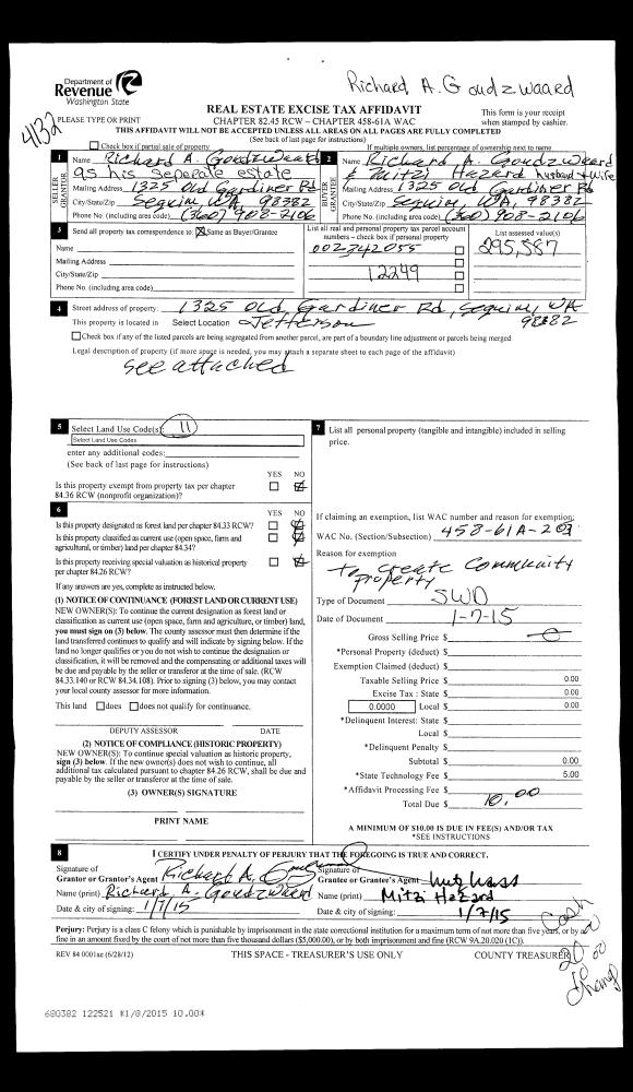| Mailing Address: | JAMES PETER HARDING PO BOX 644 CHIMACUM, WA 98325 | % Ownership: | 100.0000000000% |