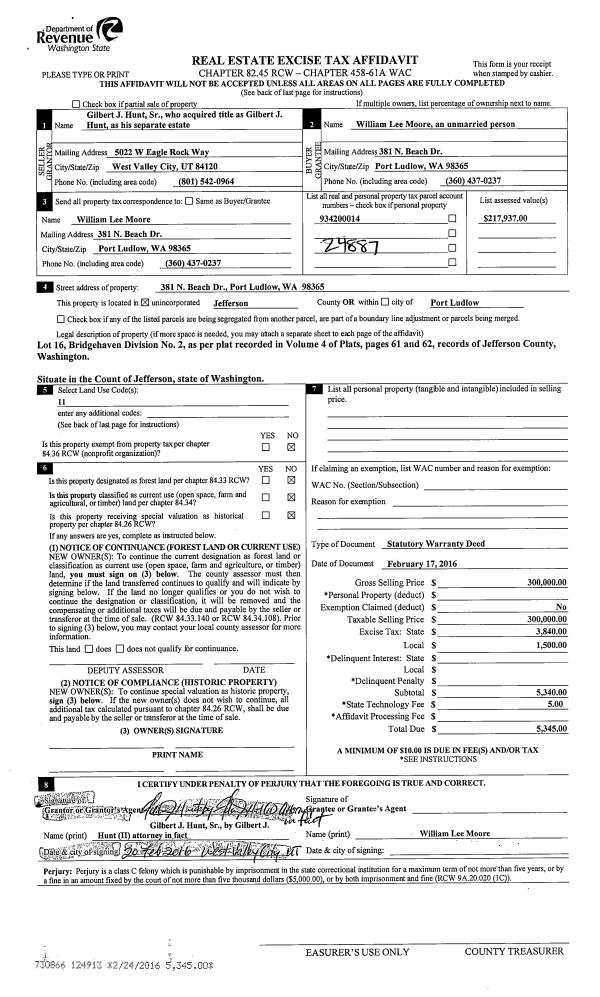 | Mailing Address: | CHRISTY N FRANSON 211 NO NAME RD PORT LUDLOW, WA 98365-8778 | % Ownership: | 100.0000000000% |