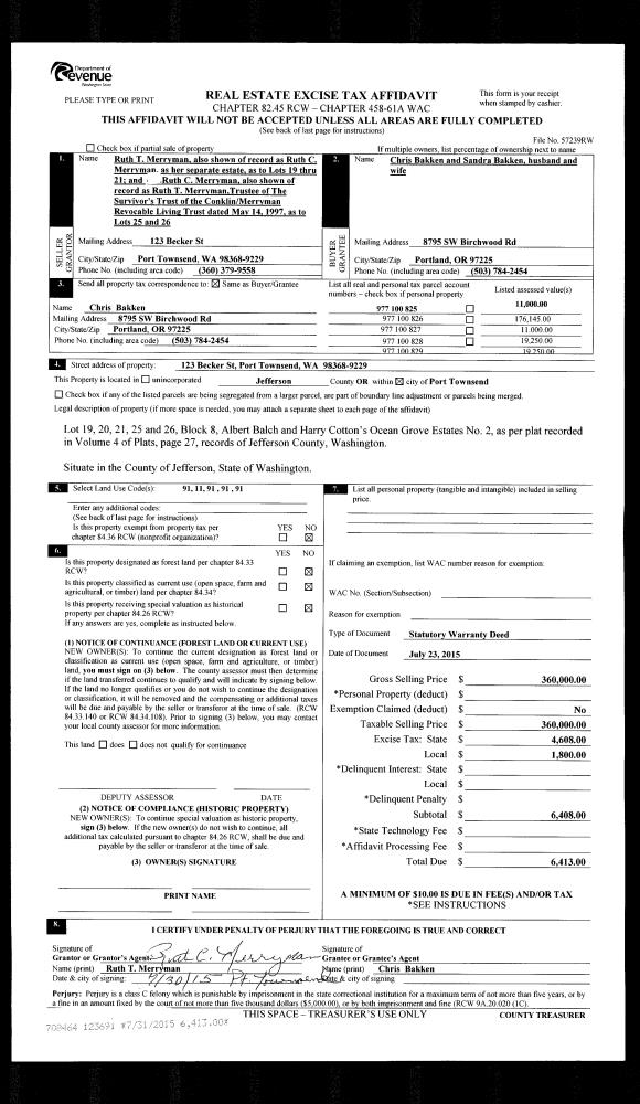 | Mailing Address: | PO BOX 65249 PORT LUDLOW, WA 98365-0249 | % Ownership: | 100.0000000000% |