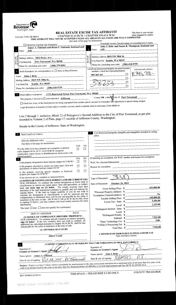 | 5 | 10/12/2016 | BSD | Bargain and Sale Deed | RAYONIER WASHINGTON TIMBER CO | TRUST FOR PUBLIC LAND | | | $5,300,000.00 | 126463 | |