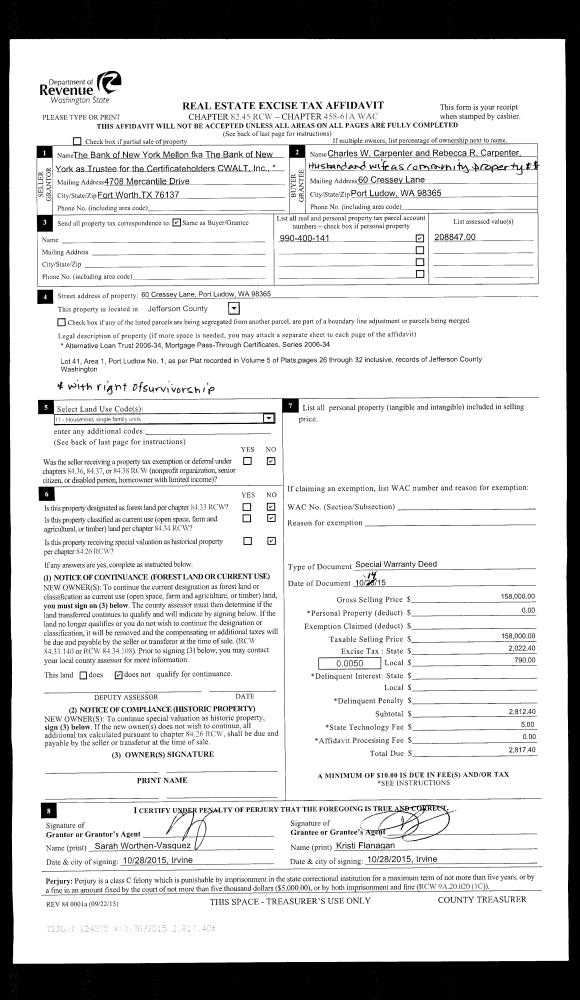 | 7 | 08/04/2013 | BSD | Bargain and Sale Deed | RAYONIER FOREST RESOURCES LP | TIMBERLANDS HOLDING COMPANY WASHINGTON INC | | | | 119758 | |