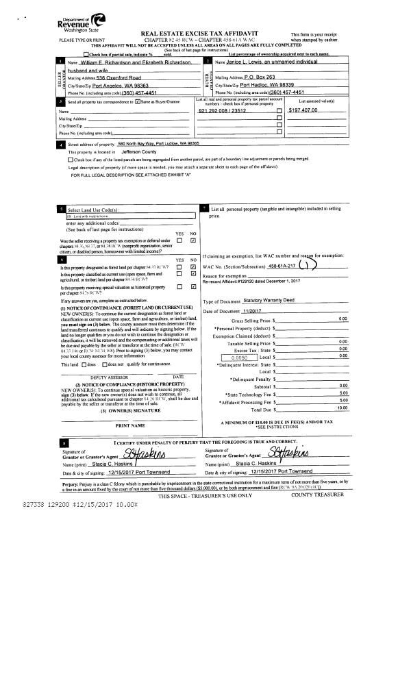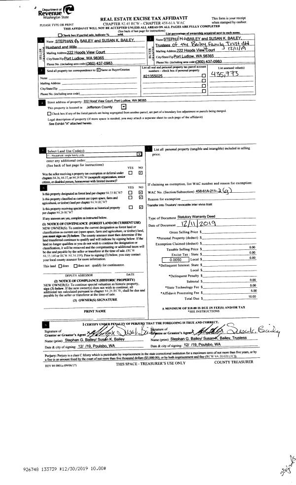 | 2 | 09/26/2019 | GRTD | Grant Deed | NORTHWIND ARTS CENTER | JEFFERSON LAND TRUST | | | $100,000.00 | 133205 | |