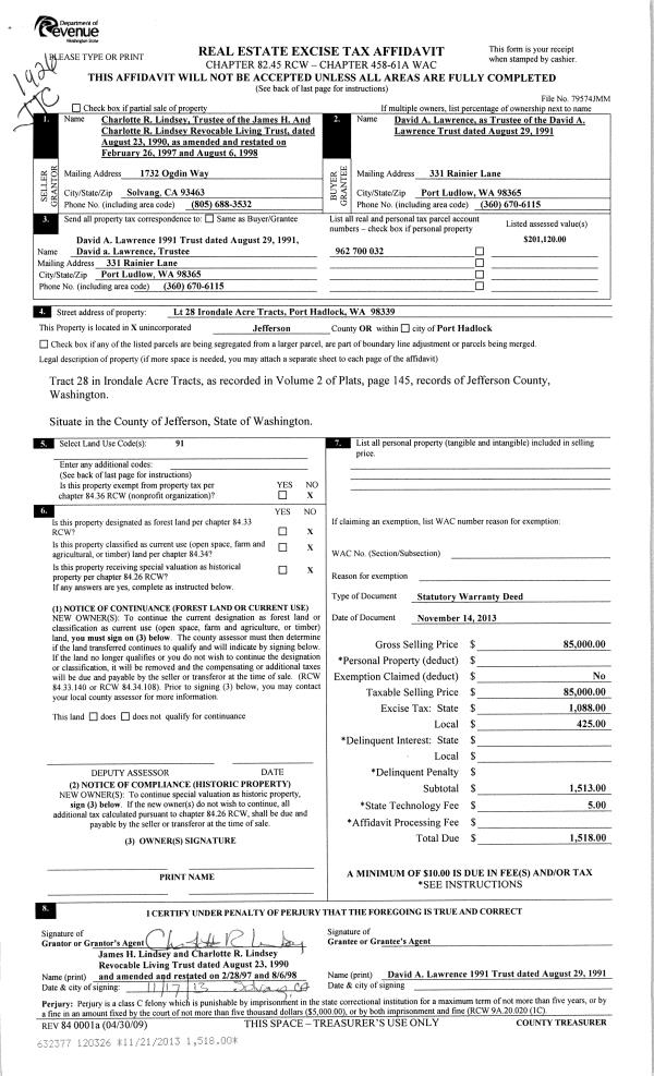 | 1 | 08/27/2020 | SWD | Statutory Warranty Deed | LESLIE M HERION | ROBERT G & KAZUKO M HOFFMAN | | | $275,000.00 | 135012 | |