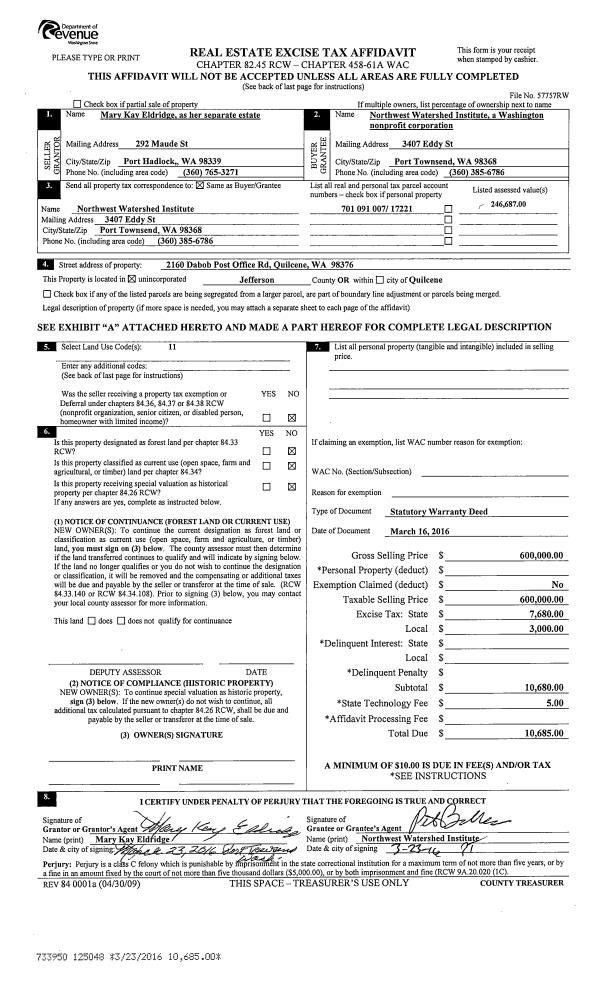 | Mailing Address: | 61 WOODLAND WAY PORT TOWNSEND, WA 98368-9595 | % Ownership: | 100.0000000000% |