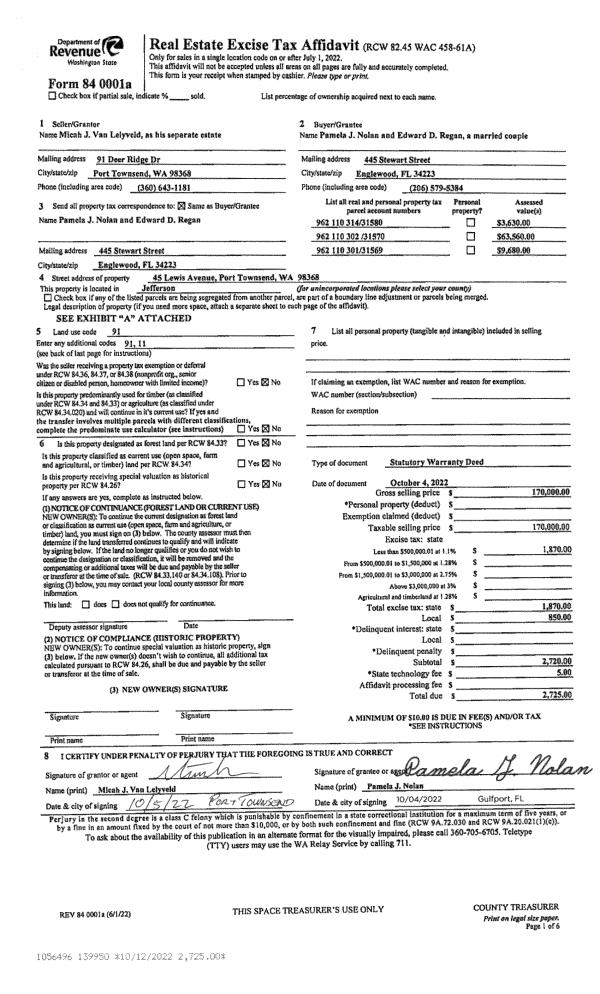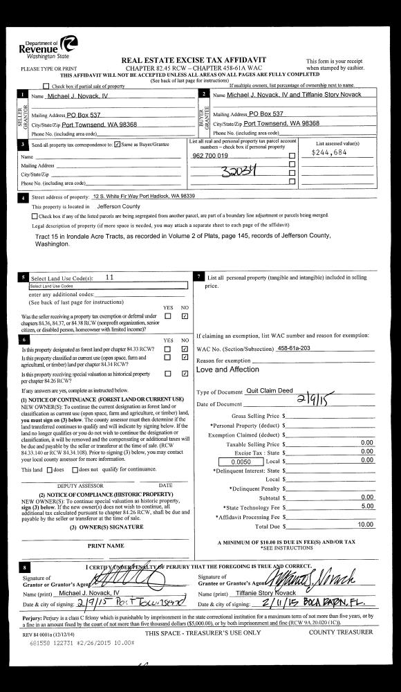 | Mailing Address: | 611 CEDAR AVE SPC 1 PORT HADLOCK, WA 98339-8506 | % Ownership: | 100.0000000000% |