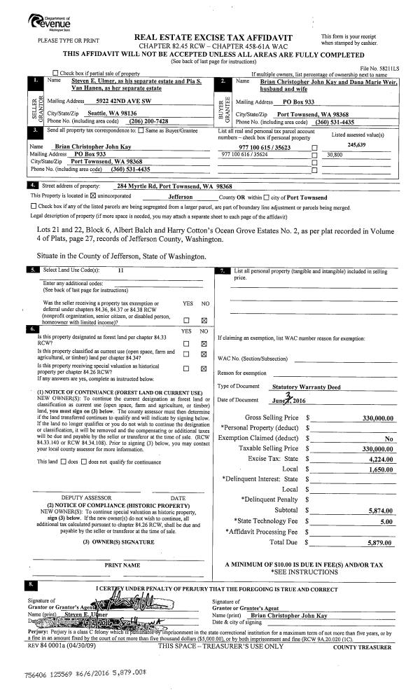 | Mailing Address: | 611 CEDAR AVE SPC 5 PORT HADLOCK, WA 98339-8506 | % Ownership: | 100.0000000000% |