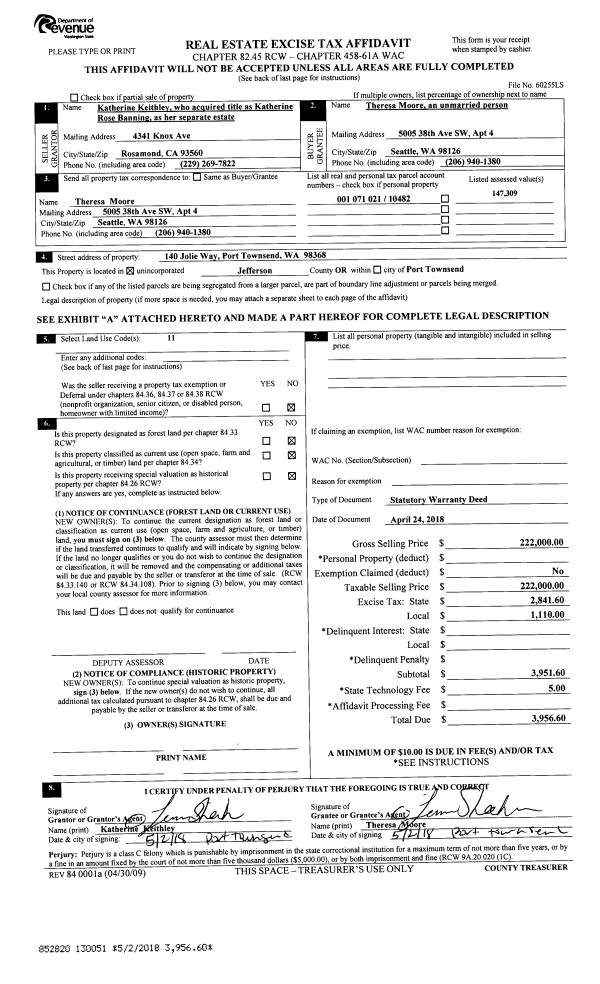| Mailing Address: | 611 CEDAR AVE SP#6 PORT HADLOCK, WA 98339-8506 | % Ownership: | 100.0000000000% |
