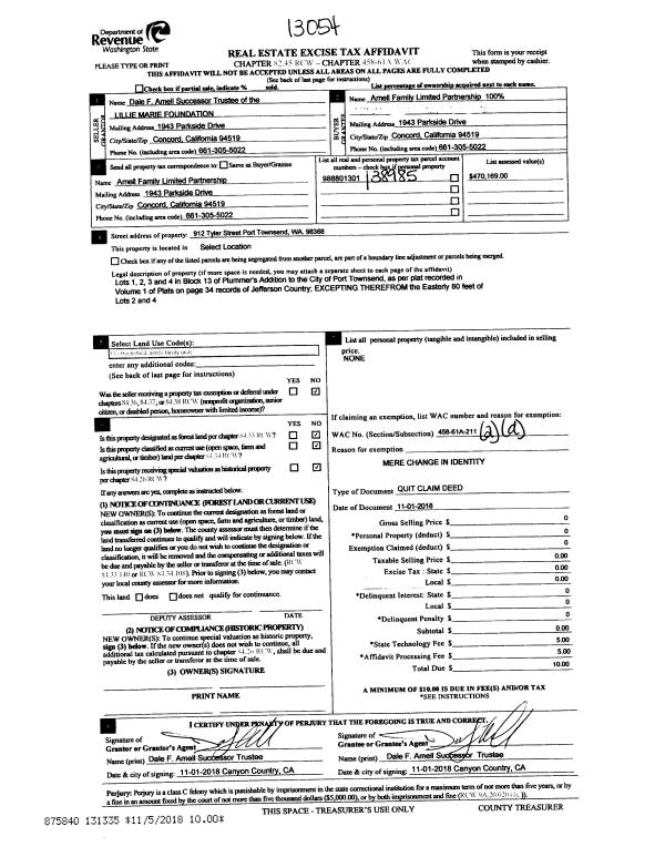 | Mailing Address: | 611 CEDAR AVE SPC 21 PORT HADLOCK, WA 98339-9548 | % Ownership: | 100.0000000000% |