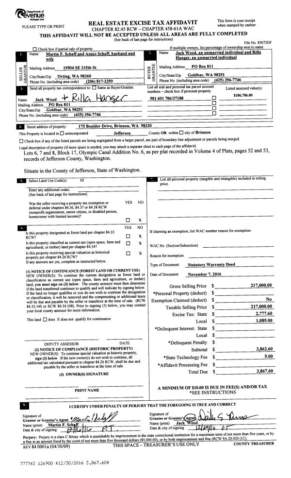 | Mailing Address: | 611 CEDAR AVE UNIT 39 PORT HADLOCK, WA 98339 | % Ownership: | 100.0000000000% |