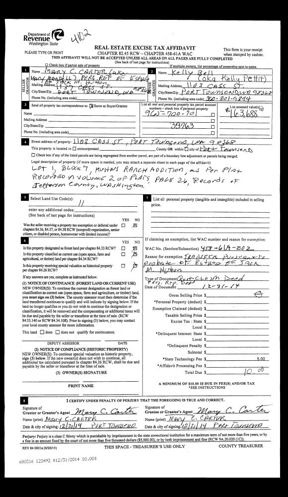 | Mailing Address: | 611 CEDAR AVE #40 PORT HADLOCK, WA 98339-9556 | % Ownership: | 100.0000000000% |