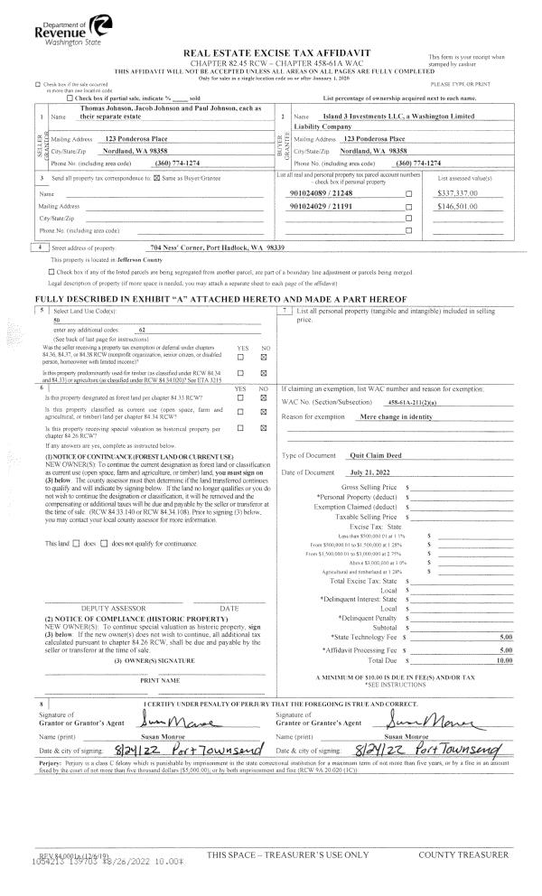 | Mailing Address: | 611 CEDAR AVE SPC 41 PORT HADLOCK, WA 98339 | % Ownership: | 100.0000000000% |