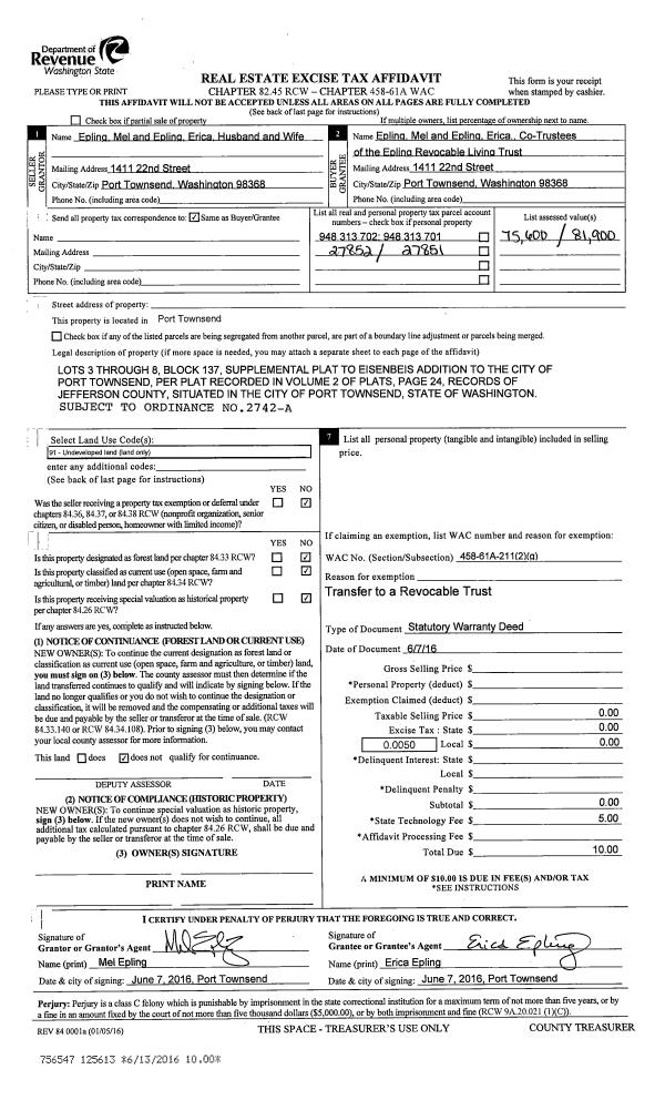 | Mailing Address: | 611 CEDAR AVE SP 68 PORT HADLOCK, WA 98339 | % Ownership: | 100.0000000000% |