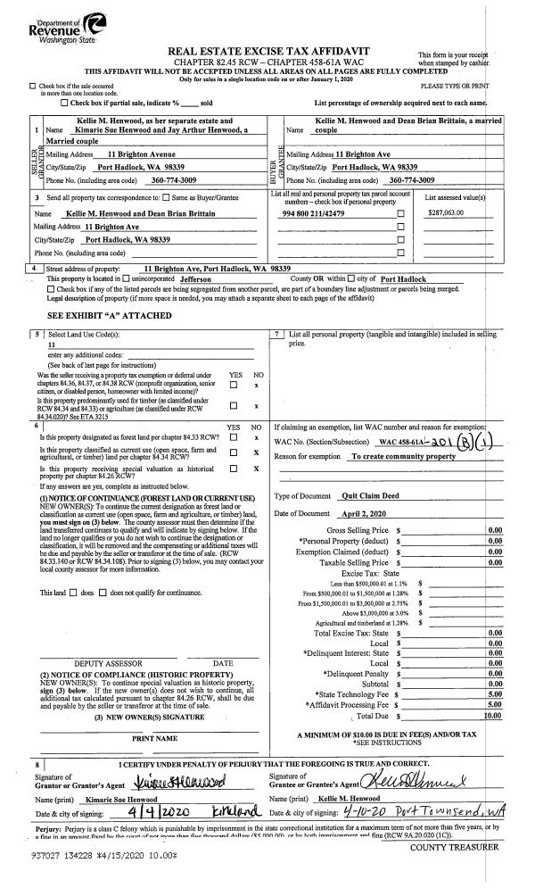 | 2 | 10/08/2020 | SWD | Statutory Warranty Deed | JHH INVESTMENT GROUP INC | SALISH GARDENS LLC | | | $3,150,000.00 | 135322 | |