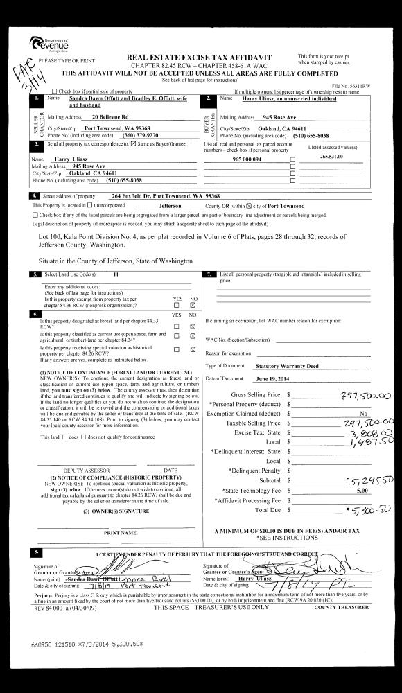 | Mailing Address: | 1207 VAN NESS ST PORT TOWNSEND, WA 98368-6549 | % Ownership: | 100.0000000000% |