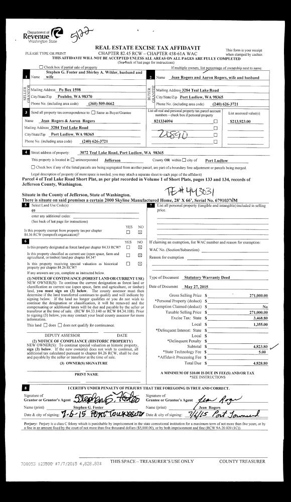 | Mailing Address: | 827 E ST PORT TOWNSEND, WA 98368-6313 | % Ownership: | 100.0000000000% |
