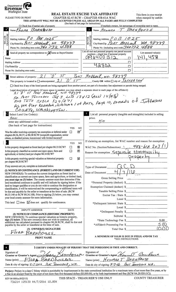 | 3 | 10/10/2016 | SWD | Statutory Warranty Deed | | | | | | 126430 | |