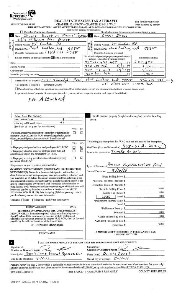 | Mailing Address: | 1633 WATER ST APT 5 PORT TOWNSEND, WA 98368-6908 | % Ownership: | 100.0000000000% |
