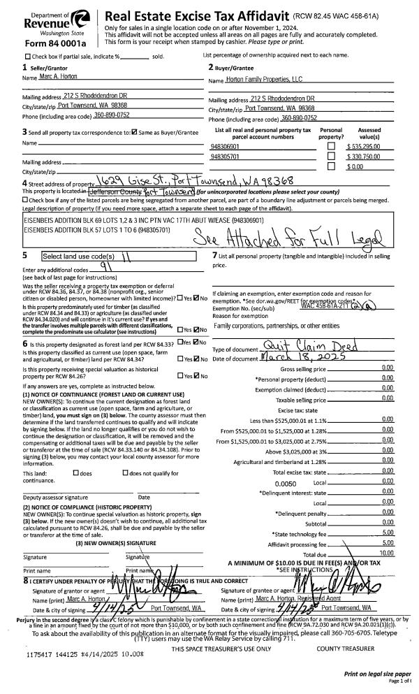 | Mailing Address: | 2610 SHERIDAN ST PORT TOWNSEND, WA 98368-7112 | % Ownership: | 100.0000000000% |