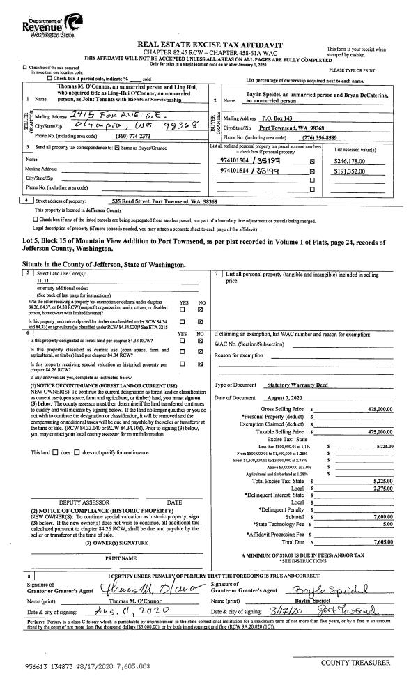 | Mailing Address: | 2347 SHERIDAN ST PORT TOWNSEND, WA 98368-7105 | % Ownership: | 100.0000000000% |