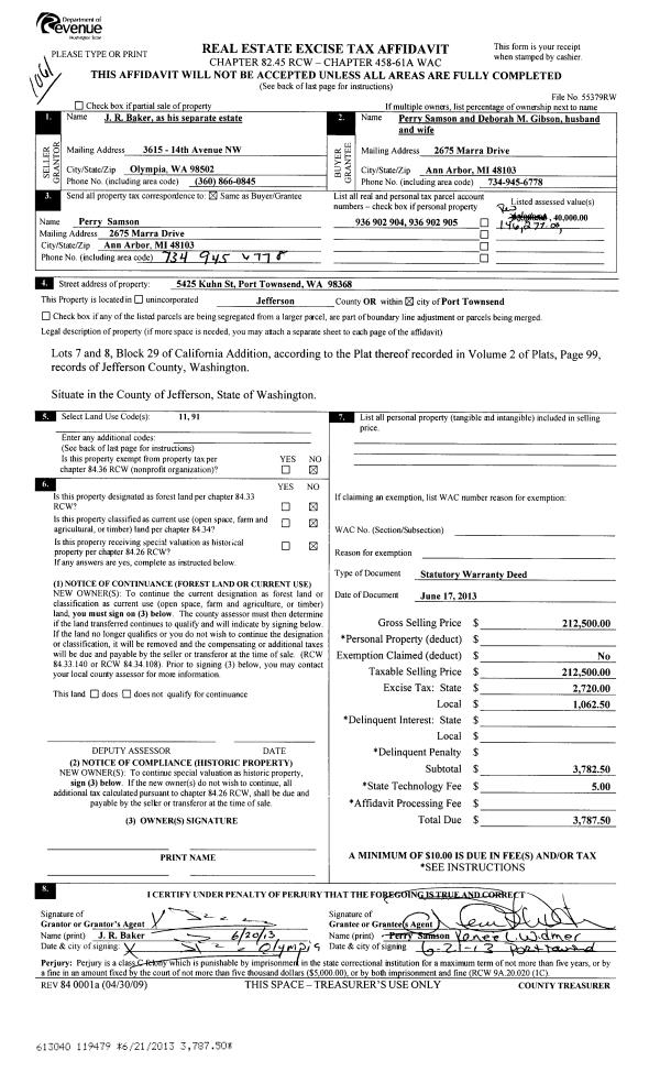| Mailing Address: | CHRISTINA K SPENCER 2575 SHERIDAN ST PORT TOWNSEND, WA 98368-7109 | % Ownership: | 100.0000000000% |