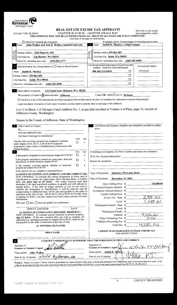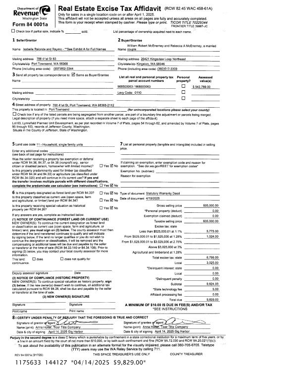 | Mailing Address: | 1213 27TH ST PORT TOWNSEND, WA 98368 | % Ownership: | 100.0000000000% |