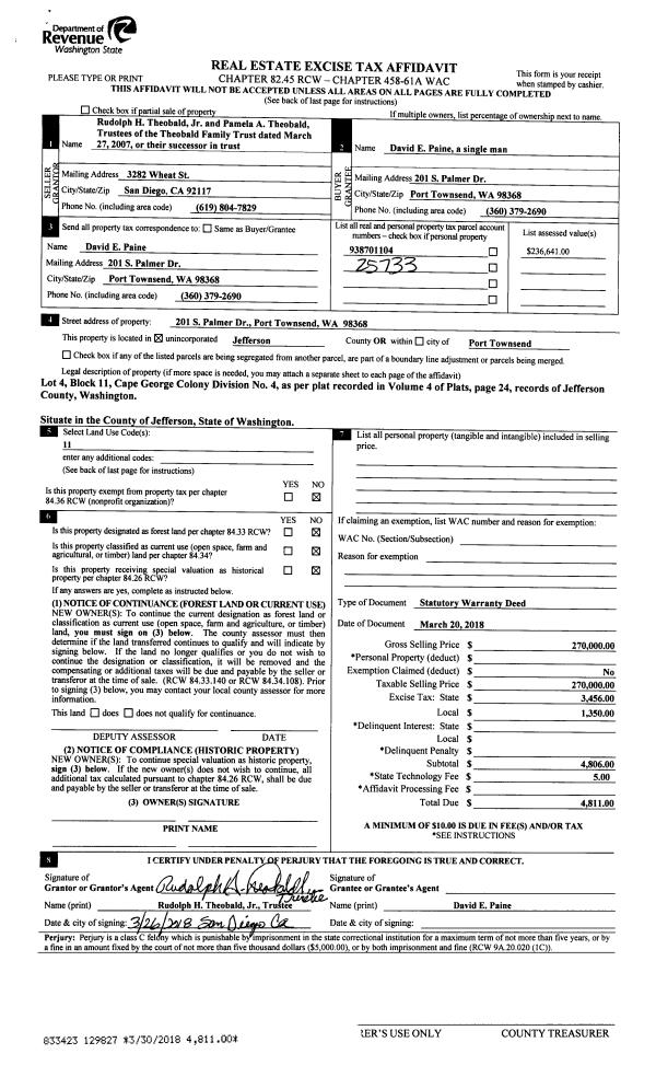 | Property ID: | 24160 | Abbreviated Legal Description: | BAYVIEW ADDITION TO HADLOCK BLK 3 LOTS 1 & 2 W/PTNS BAY VIEW AVE & OAK ST ADJ LOT 1 & 2 (LESS PTN TAX 43) QTA#19-2-00131-16 |
