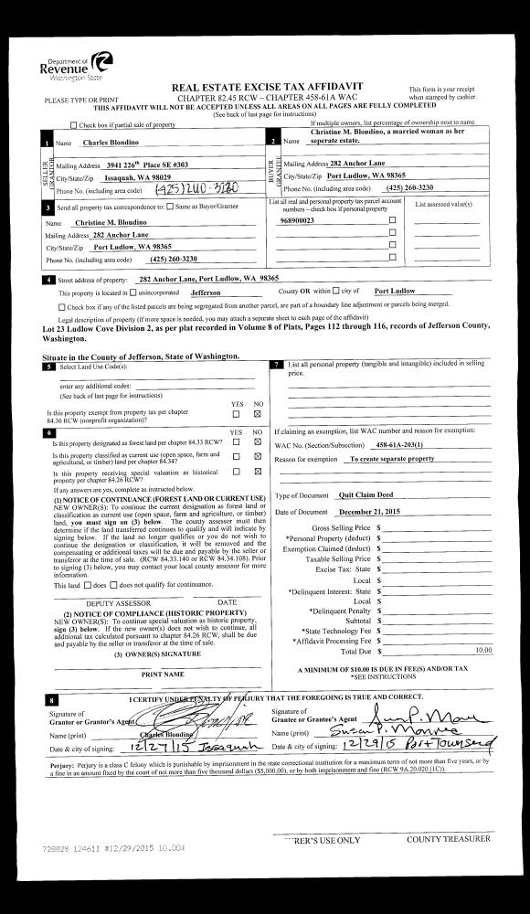 | Mailing Address: | 171 MARTINGALE PL PORT LUDLOW, WA 98365-8720 | % Ownership: | 100.0000000000% |