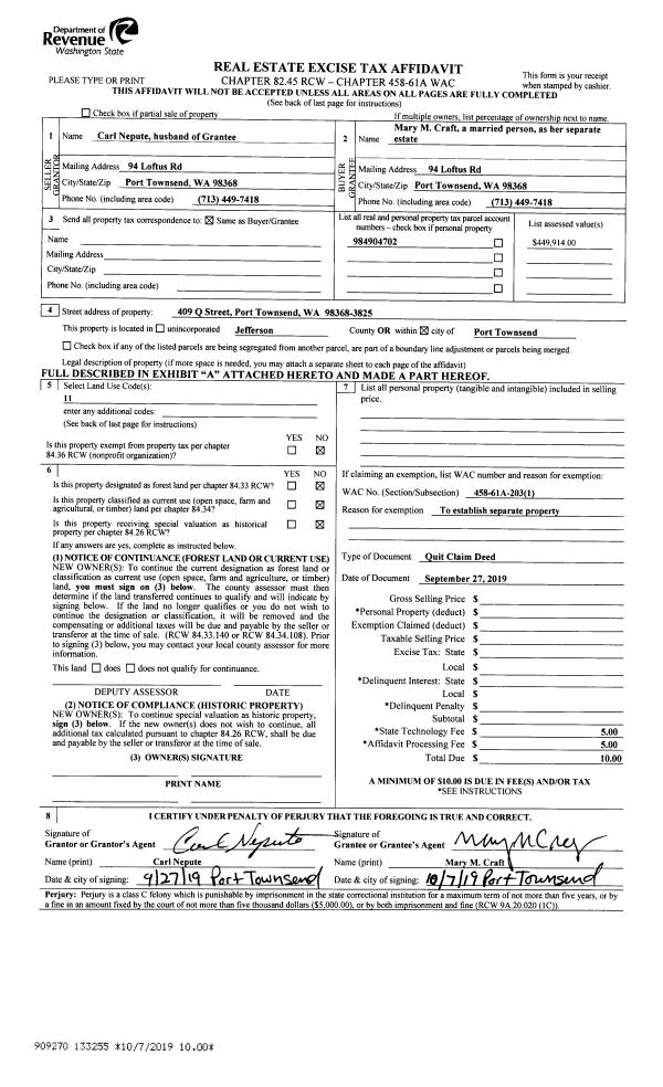| 1 | 08/06/2020 | QCD | Quit Claim Deed | RONALD G PHILLIPS | | | | | 134820 | |