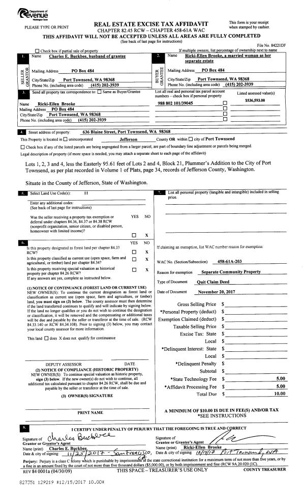 | Mailing Address: | MATTHEW T MORTENSEN ANDREA M KNUTSON 494 BECKETT POINT RD PORT TOWNSEND, WA 98368-9823 | % Ownership: | 100.0000000000% |