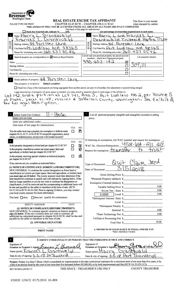 | Mailing Address: | 2410 35TH ST PORT TOWNSEND, WA 98368-4733 | % Ownership: | 100.0000000000% |