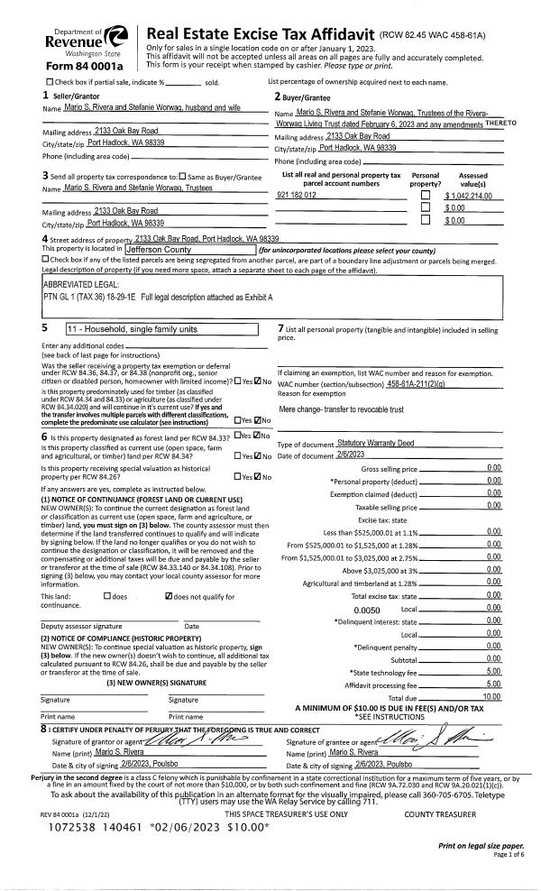 | Mailing Address: | 103 SYCAMORE STREET PORT HADLOCK, WA 98339-9558 | % Ownership: | 100.0000000000% |