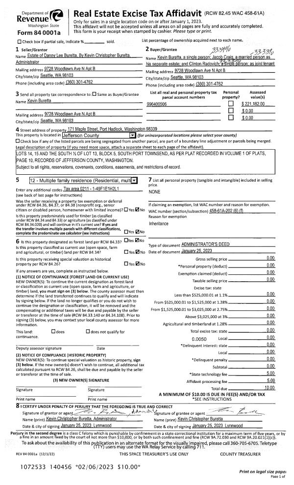 | Mailing Address: | 73 SYCAMORE ST PORT HADLOCK, WA 98339-9558 | % Ownership: | 100.0000000000% |
