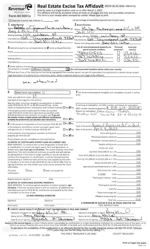 | Mailing Address: | 70 SYCAMORE ST PORT HADLOCK, WA 98339-9558 | % Ownership: | 100.0000000000% |