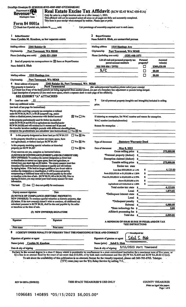 | 6 | 10/06/2003 | SWD | Statutory Warranty Deed | SHEPHERD, MICHAEL/WELLS, | HAMMON, GARY A/DEBORAH H | 0 | 0 | $161,000.00 | 98529 | 0 |