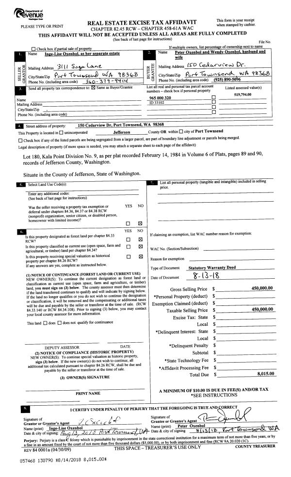 | 4 | 04/08/2019 | SWD | Statutory Warranty Deed | JENIFER A CLARK | AIMEE E DENNIS | | | $300,000.00 | 132113 | |