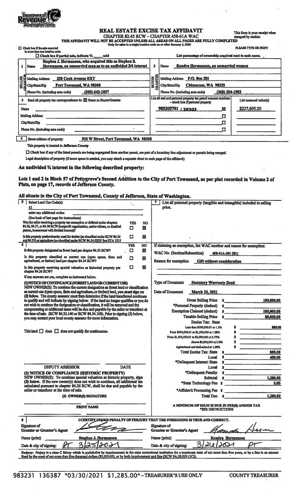 | Mailing Address: | PO BOX 608 QUILCENE, WA 98376-0608 | % Ownership: | 100.0000000000% |
