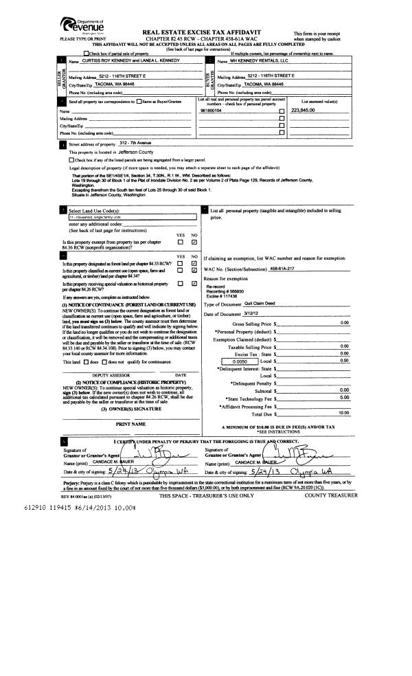 | 2 | 05/25/2017 | SWD | Statutory Warranty Deed | KAY D SPADONI | KEVIN & BONNIE DANIELS | | | $12,000.00 | 127815 | |