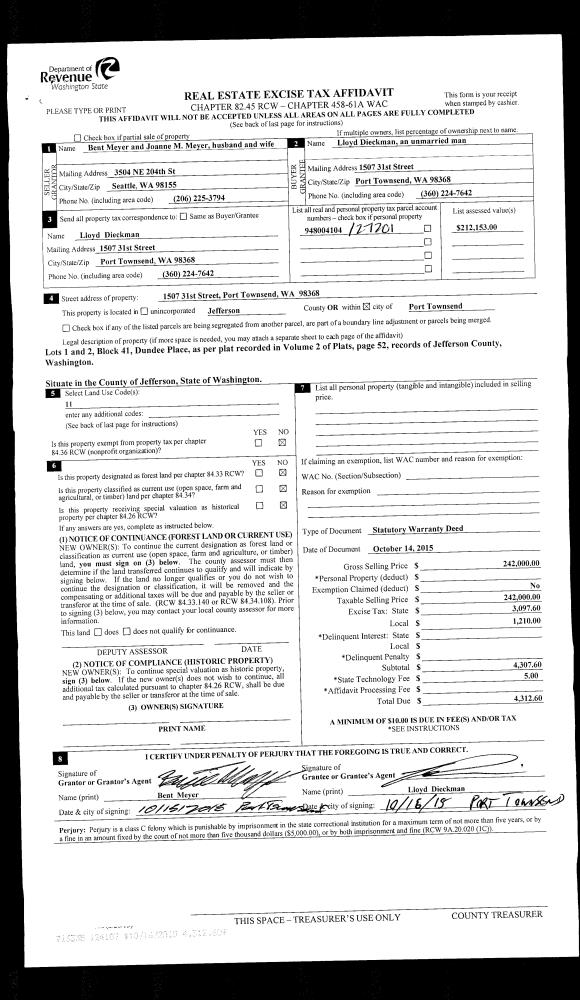 | Mailing Address: | 75 SAINT JAMES PL PORT TOWNSEND, WA 98365-9558 | % Ownership: | 100.0000000000% |
