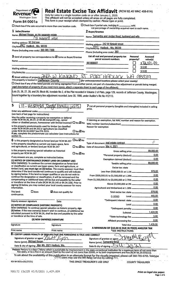| Mailing Address: | 1212 GARFIELD ST PORT TOWNSEND, WA 98368-6515 | % Ownership: | 100.0000000000% |