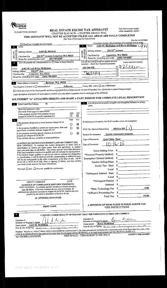 | Mailing Address: | 305 49TH ST PORT TOWNSEND, WA 98368-2001 | % Ownership: | 100.0000000000% |