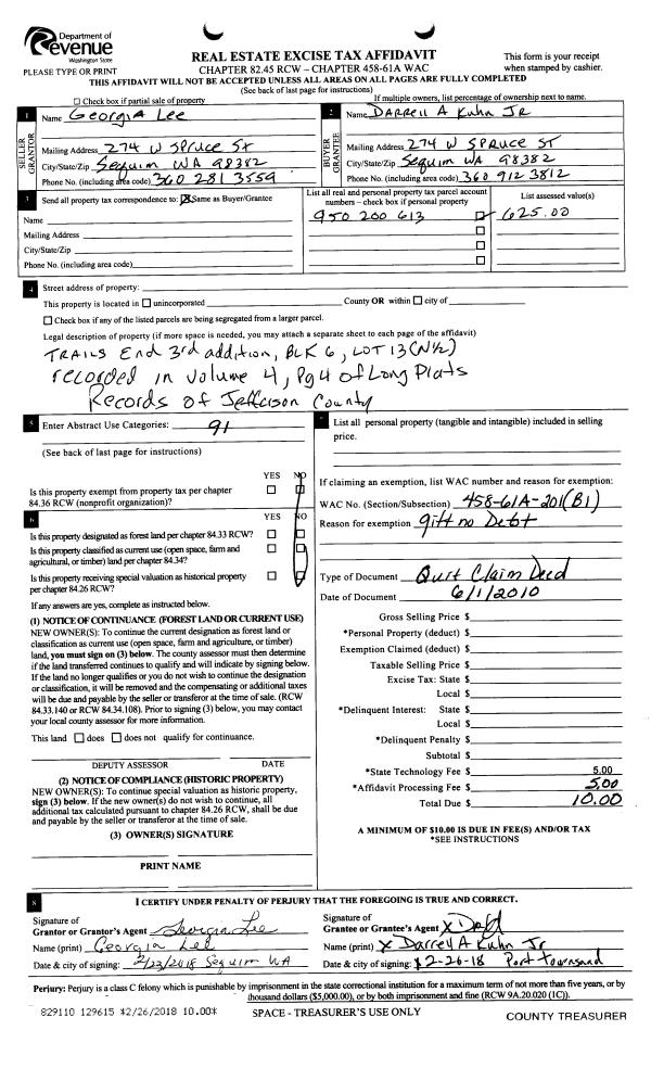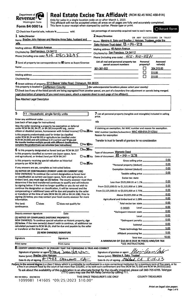 | Mailing Address: | SHARON DEAN 4754 HAINES ST PORT TOWNSEND, WA 98368-2109 | % Ownership: | 100.0000000000% |
