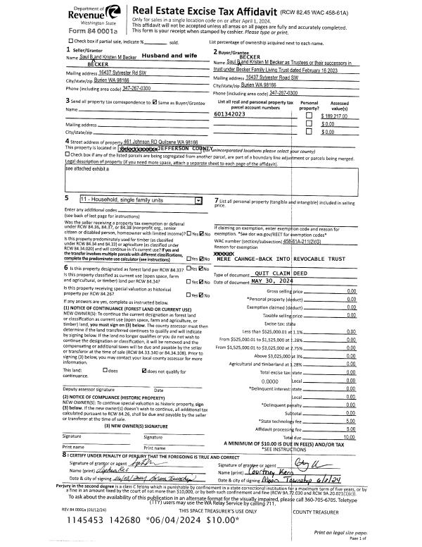 | 1 | 10/07/2024 | SWD | Statutory Warranty Deed | JEROME V SCHNELL | BREANNE & BRIAN BAKKE | | | $599,000.00 | 143336 | |