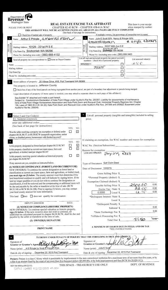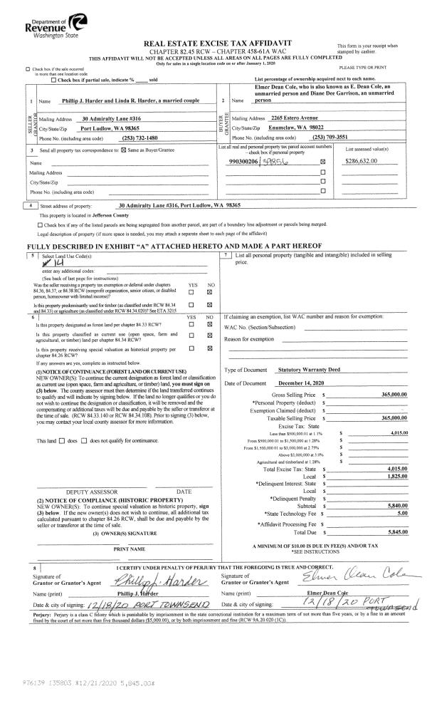 | 5 | 04/23/2020 | SWD | Statutory Warranty Deed | PORT TOWNSEND ASSOCIATES | WILLIAM APPLETON | | | $379,000.00 | 134294 | |