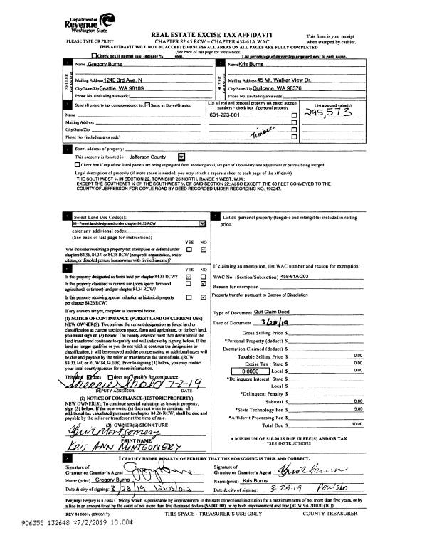 | Mailing Address: | 525 N BEACH DR PORT LUDLOW, WA 98365-9273 | % Ownership: | 100.0000000000% |