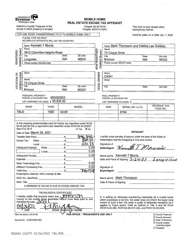 | Mailing Address: | 951 THORNDYKE RD PORT LUDLOW, WA 98365-9290 | % Ownership: | 100.0000000000% |