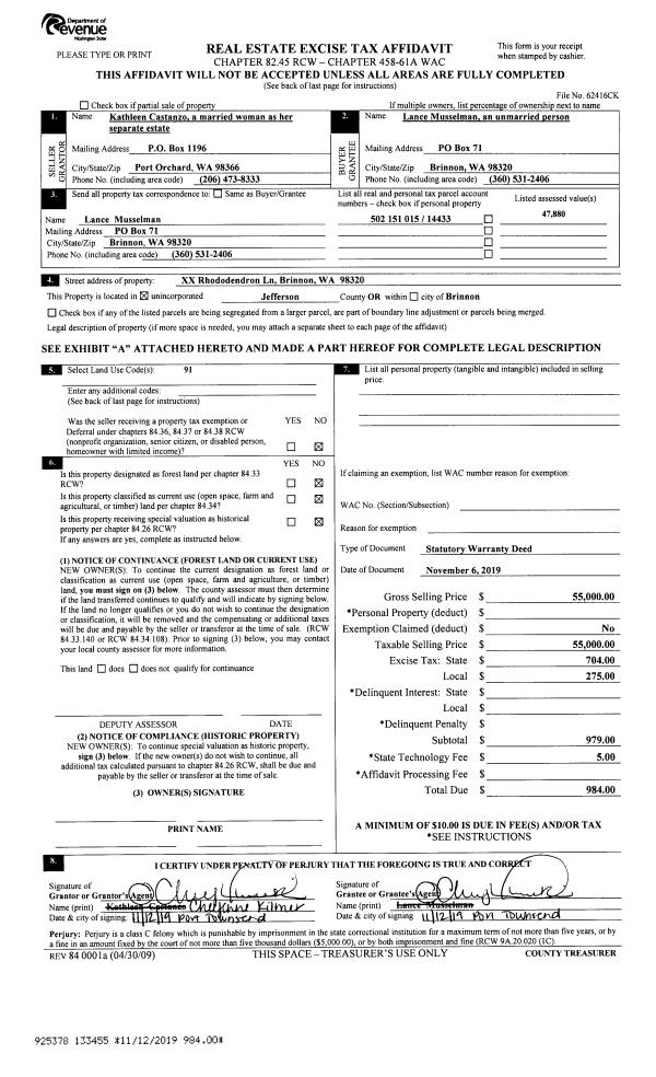 | Mailing Address: | 771 THORNDYKE RD PORT LUDLOW, WA 98365-9292 | % Ownership: | 100.0000000000% |