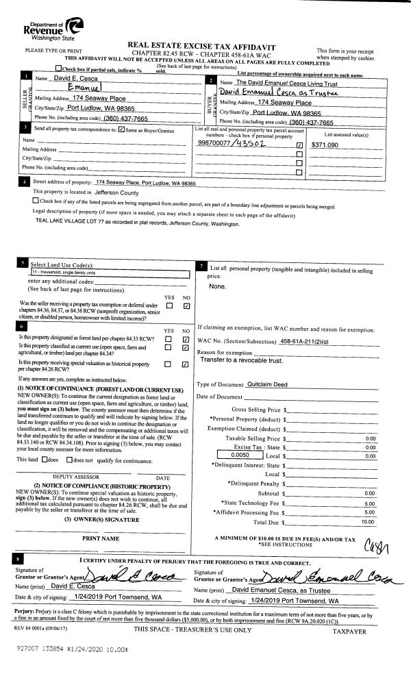 | Mailing Address: | 771 THORNDYKE RD PORT LUDLOW, WA 98365-9292 | % Ownership: | 100.0000000000% |