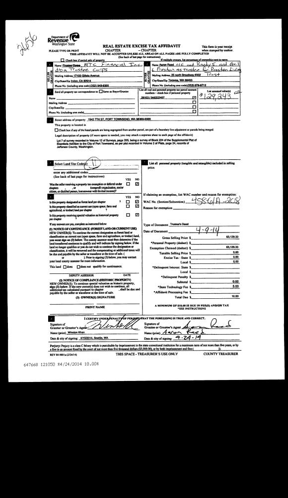 | Mailing Address: | ESTHER HARRISON TRUSTEE 910 THORNDYKE RD PORT LUDLOW, WA 98365-0224 | % Ownership: | 100.0000000000% |
