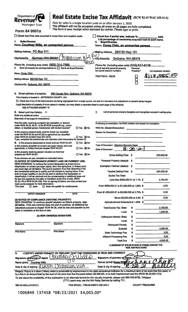 | Mailing Address: | PENNY C JOSEPH 990 THORNDYKE RD PORT LUDLOW, WA 98365-9290 | % Ownership: | 100.0000000000% |